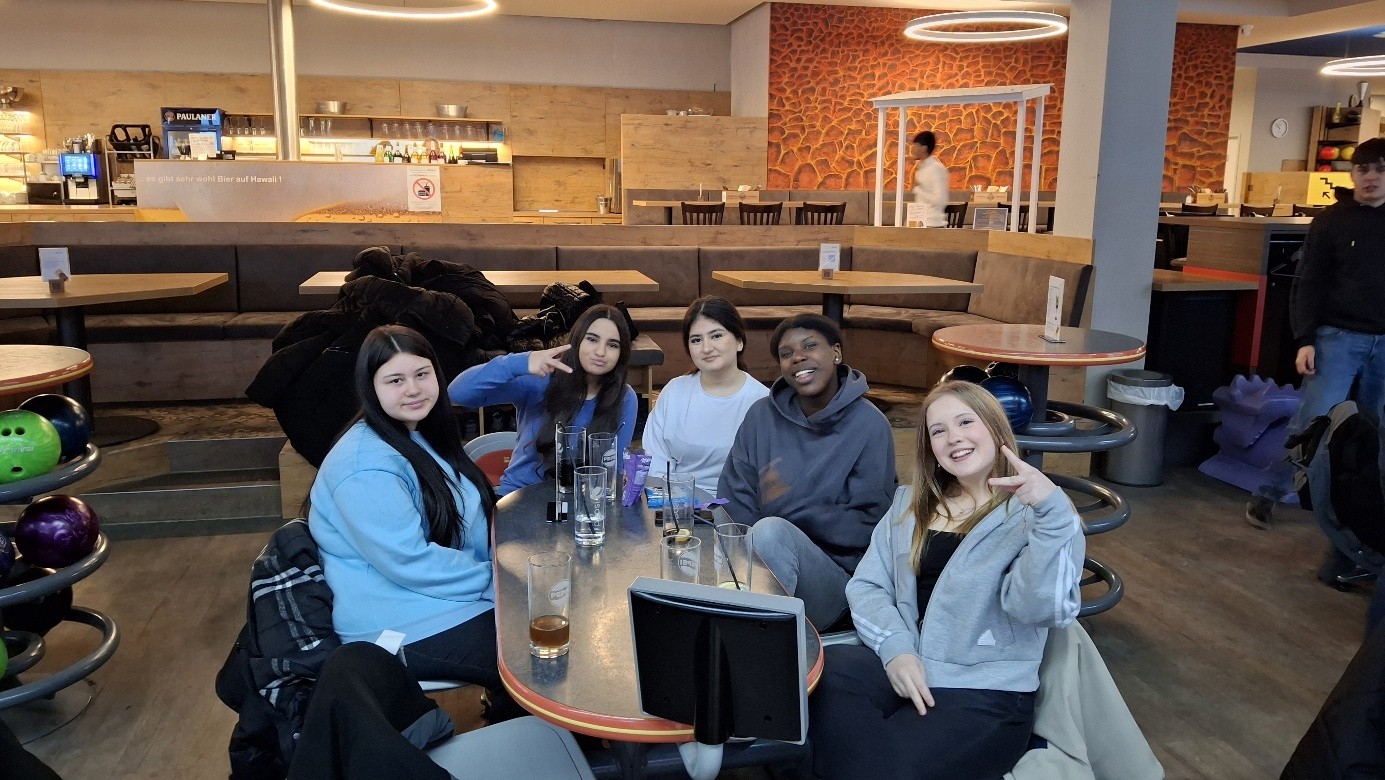 Das erste Halbjahr geht zu Ende und nach Wochen mit vielen Tests und Referaten nahmen sich die Klassen 8a und 8b eine Auszeit vom Schulstress und gingen gemeinsam Bowling spielen. Gut gelaunt ging es für zwei Stunden zum Dreambowl. Vor allem die zweite Stunde, in der das Diskolicht angeschaltet wurde, sorgte für gute Stimmung. Bestens gelaunt ging es mit frischer Energie für das zweite Halbjahr zurück zur Schule.