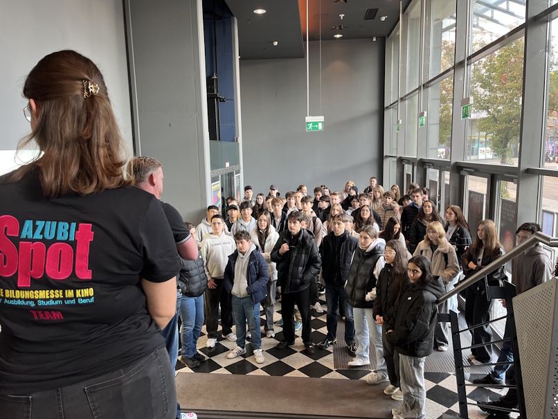 Am Dienstag, den 14. Oktober 2025, besuchten die 9. Klassen und die Klasse 10 unserer Schule die Berufsinformationsmesse „Azubispot“ im Cinemaxx in Sindelfingen. Ziel der Veranstaltung war es, den Schülerinnen und Schülern einen Einblick in verschiedene Ausbildungsberufe und Karrierewege zu geben.